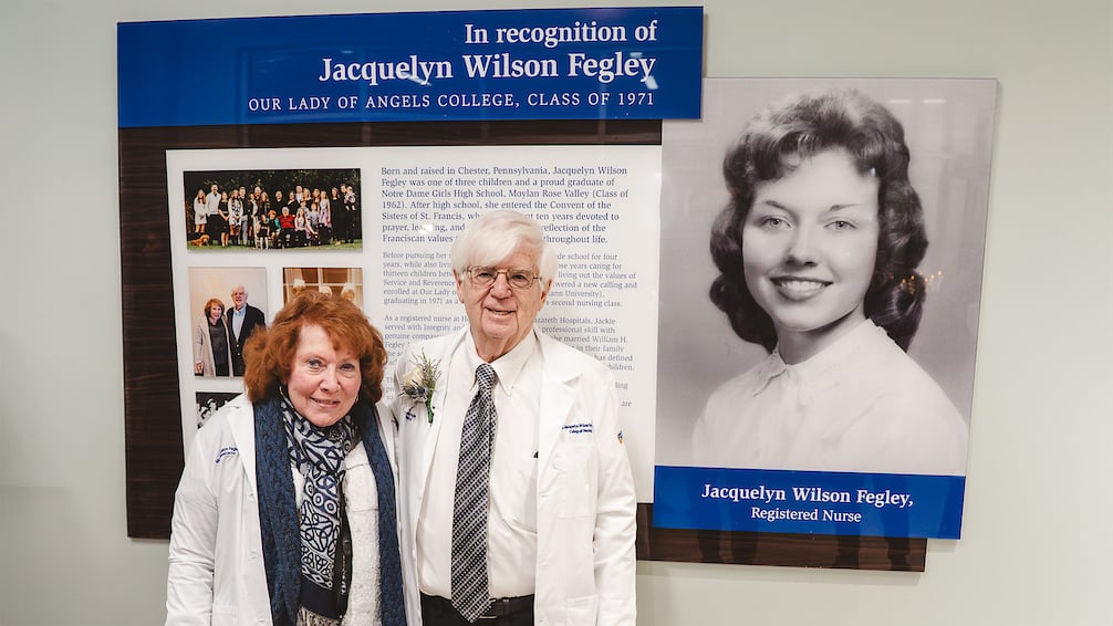 Through her lifelong dedication to faith, family, education, and the healing profession, Jacquelyn Wilson Fegley exemplifies the RISES values—Reverence, Integrity, Service, Excellence, and Stewardship—that are at the heart of Neumann University’s mission.