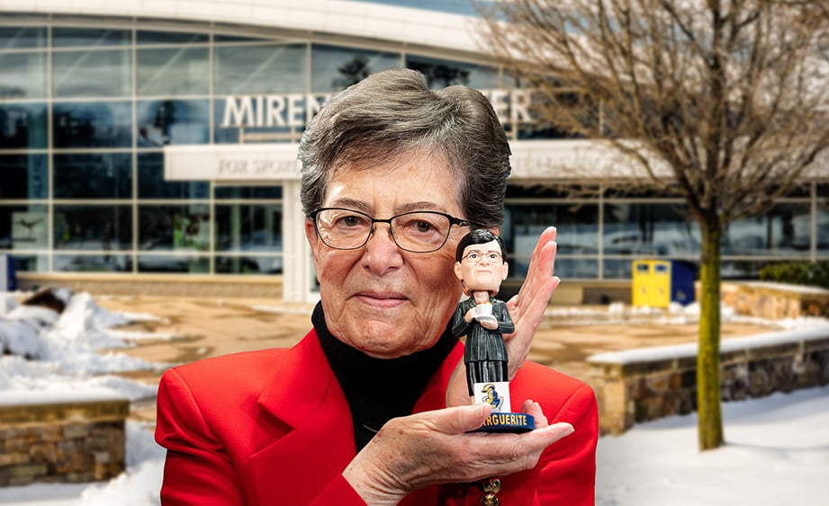 Sr. Marguerite served as vice president for mission and ministry from 1996 to 2022. When she “retired,” she asked Dr. Chris Domes if she could continue working with athletes. For the last four years, she has done just that, as an academic coach for student athletes with an office in the Mirenda Center.